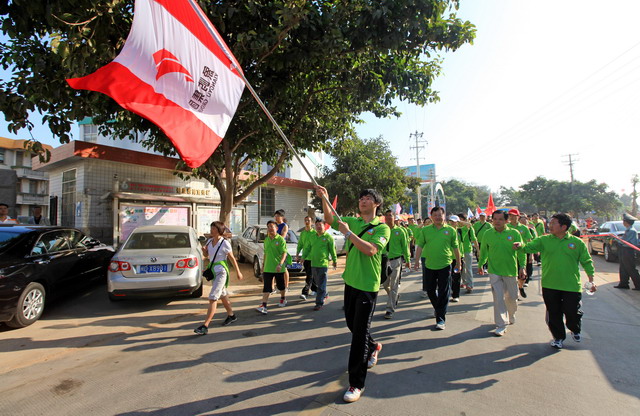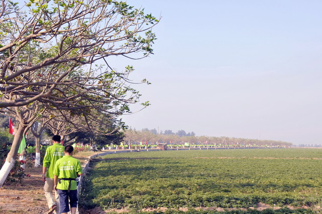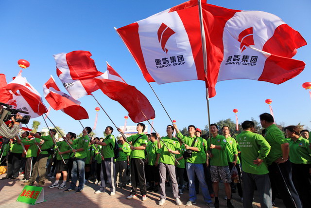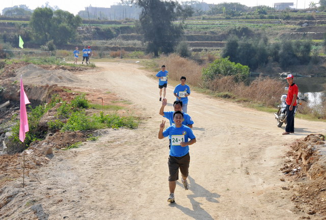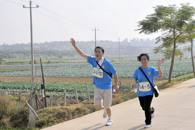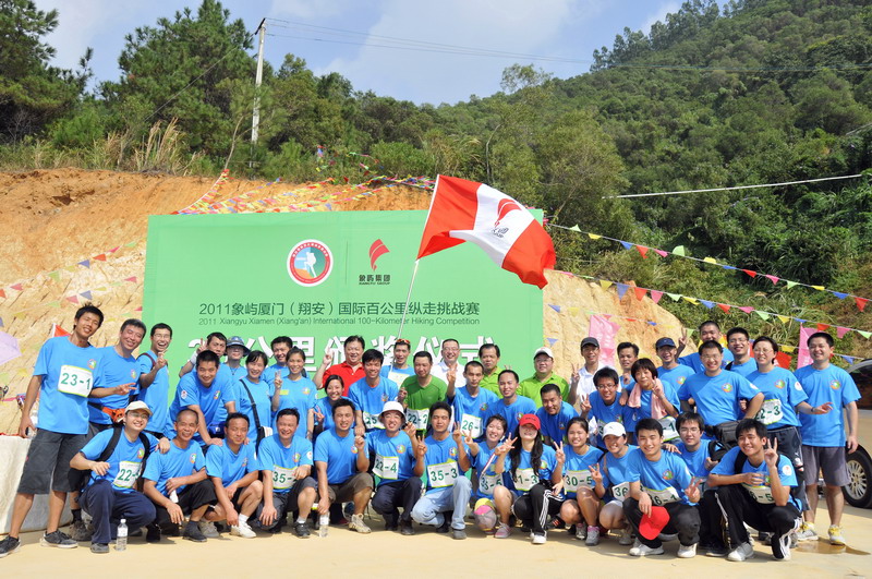11月5日8時09分,明媚秋光里,廈門市委常委、副市長臧杰斌宣布2011象嶼廈門(翔安)國際百公里縱走挑戰(zhàn)賽開始,廈門市人大常委會副主任黃杰成、廈門市政協(xié)副主席陳昌生、國家奧林匹克體育中心副主任彭維勇、象嶼集團總裁張水利等一起為比賽鳴槍。來自28個國家和地區(qū)的近萬名運動愛好者,從大嶝小鎮(zhèn)·臺灣免稅公園廣場出發(fā),穿越田野、海濱、山巒、閩南古厝,開始了一段挑戰(zhàn)自我的征途。這其中,由象嶼集團員工及家屬、合作伙伴、共建單位等組成的千人象嶼團隊分外引人注目,浩浩蕩蕩的象嶼人走在一起、樂在一起,在欣賞沿途自然、人文風光的同時,也享受著挑戰(zhàn)自我、永不止步的健康向上,享受著與同事、親朋共度美好秋假的怡然歡樂。