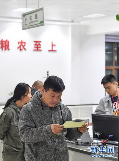 一位糧農(nóng)在查看糧食化驗(yàn)結(jié)果