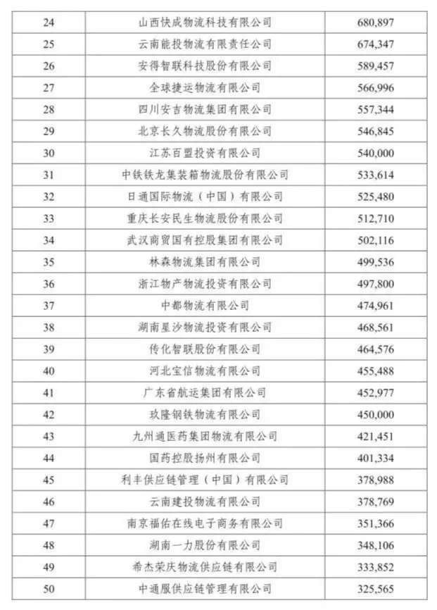 該榜單由中國(guó)物流與采購(gòu)聯(lián)合會(huì)組織評(píng)選,按照重點(diǎn)物流企業(yè)統(tǒng)計(jì)調(diào)查結(jié)果提出了2019年度中國(guó)物流企業(yè)50強(qiáng)排名。據(jù)悉, 50強(qiáng)物流企業(yè)2018年物流業(yè)務(wù)收入合計(jì)9833億元,按可比口徑計(jì)算,同比增長(zhǎng)16.9%。50強(qiáng)物流企業(yè)門檻提高到32.6億元,比上年增加3億元。